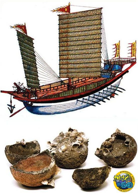 据传说,1281年,忽必烈派出一支由4400艘战舰和10万大军组成的庞大舰队东征日本。面对势不可挡的强大敌人,日本天皇只有向上天寻求解脱。没想到的是,日本天皇的祈祷似乎真的起到效果。忽必烈的整个舰队在一夜之间被“神风”完全摧毁,所有战舰沉入海底,10万大军也葬身鱼腹,忽必烈的东征计划以失败而告终。20世纪80年代,日本考古学家Torao Mozai和Kenzo Hayashida分别带领一支考古队在伊万里湾对这一传说进行考古探索,他们从一艘沉船中发现了一些遗迹。根据这些遗迹,考古学家对史实和传说进行了甄别。他们在船中发现了大量的头盔、箭头、锚、铁剑和陶制炸弹等物品,此外还有一些人体的头颅骨。在此之前,一位当地渔民还发现了一位指挥官的青铜印章,上面刻有汉字和蒙古文字。因此,这些物品应该属于忽必烈舰队。通过对物品的分类和分析,考古学家更正了传说中的一些不符事实的说法。考古学家估计,这个舰队应该由数百艘战舰组成,而且是仓促组建,士兵主要由汉人组成。传说中所谓的“神风”有可能就是常见的台风。