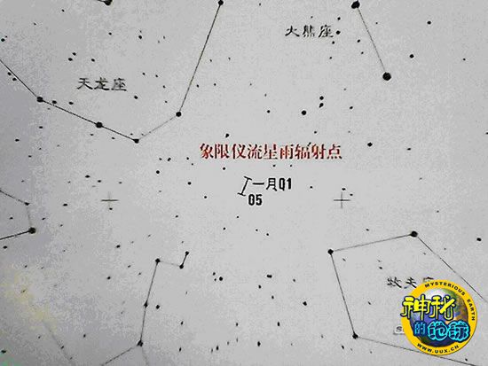 作为传统大流量的流星雨中,象限仪流星雨可能是大家最为陌生的一个,其实对于天文学家来说也是一样,就连它的母体彗星直到现在还是一个迷。一种观点是象限仪流星雨的母体彗星为C/1490 Y1和C/1385 U1,而有的科学家认为它是小行星2003 EH1为我们带来的。关于该流星雨的活动时间现在也有了新的说法,之前天文学家认为它是从年初开始活动,并且持续时间很短。通过更多观测表明,它的活跃期从前一年的12月28日一直持续到1月12日。也就是说在将近半个月的时间里,夜间只要象限仪流星雨的辐射点位于地平线以上,我们就能看到属于这个群的流星。由于辐射点赤纬接近50°,对于北半球中高纬度地区来说,位于拱极区内,常年不会落下,因此该流星雨仅适合在北半球观测。