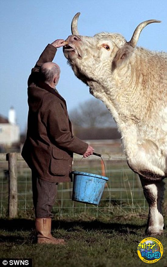 今年80岁的亚瑟-杜克特于四年前买下了这头白色的小公牛。杜克特介绍说,“它现在非常健康。没有任何理由说它不会再继续成长。它现在只有八岁。除非一些无法预料的事情发生,否则它会越长越大。不过,它并不是肥胖,它全身都是肌肉。我肯定还会把它喂得更强壮,但我也不希望将它养成一个太大的怪物。我只希望它健康,每年逐步增加体重。这就是我为什么将它养在野外,而不是养在栏中的原因。”