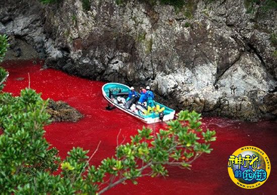 在这张摄于2003年的照片中,宽吻海豚遭到太地町当地渔民的残忍屠杀,周围海水也被血水染成红色,一些宽吻海豚尸体堆放在小船上。1979年4月,美国《国家地理》杂志刊登了日本壹岐岛宽吻海豚遭屠杀的照片,这是国际媒体首次报道日本渔民残忍猎杀海豚的做法。次年,美国哥伦比亚广播公司(CBS)播出了这次猎杀活动的录像,国际社会的批评最终使壹岐岛和其他一些渔村在20世纪80年代中期放弃了这种残忍的做法。然而,太地町渔民却从未放下他们手中的屠刀。