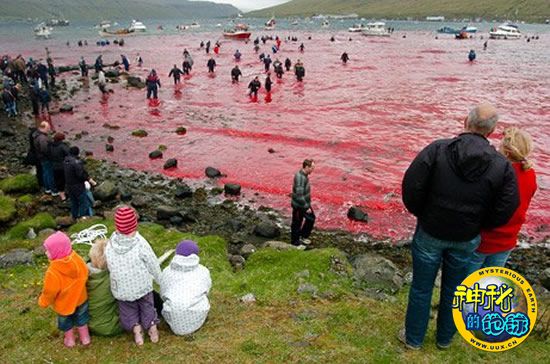 2009年5月,法罗群岛的渔民将海豚赶进一个小水湾,然后用刀子将其残忍猎杀,这种做法已经持续了数百年。法罗群岛是北欧国家丹麦的海外自治领,位于冰岛附近。不过,法罗群岛的猎杀活动并未像太地町那样引起国际媒体的负面报道,因为前者的规模更小,亦非商业捕杀——海豚肉会在当地家庭平均分配而不是拿来出售。