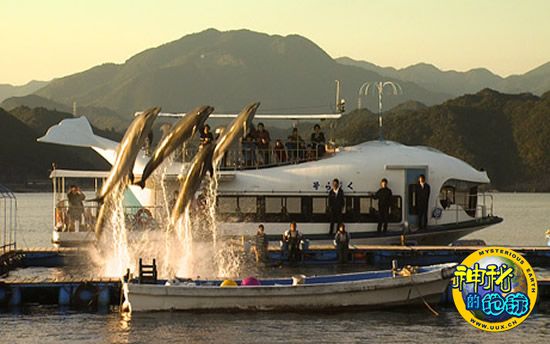 在这张未注明日期的照片上,受过训练的海豚正在太地町进行表演。但是,在动物保护主义者的眼中,太地町却因屠杀海豚早已变得臭名昭著:每年有2000只海豚被赶进当地一个小海湾,被当地渔民用鱼叉残忍猎杀。大多数海豚被当作食物出售,还有大约百只被活着捉上来,卖到日本、韩国、伊朗、阿联酋迪拜等地的水族馆。
