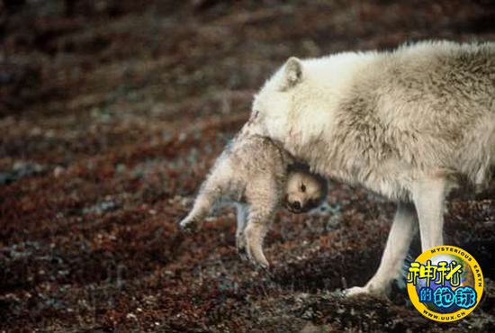 布鲁图斯正在撕咬麝牛的尸体。在埃尔斯米尔岛上,麝牛是北极狼的主要捕食对象