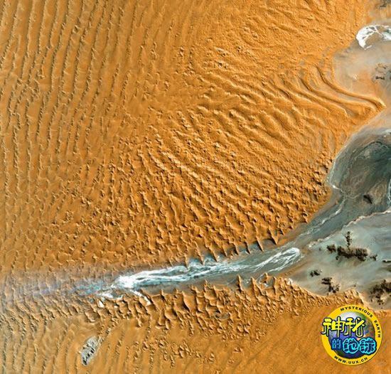 太空中拍摄的地球沙漠 来源: 神秘的地球 时间:2009年12月30日 11:25 7.世上最高最古老沙丘 世上最高最古老沙丘(美宇航局和国家地质调查局负责的陆地卫星7号于2000年拍摄) 在沿纳米比亚大西洋海岸前进的风影响下,纳米比沙漠的沙丘高度接近1000英尺(约合304米)。第一幅照片展现的纳米比-诺克卢夫特国家公园是非洲面积最大的狩猎公园,同时也是土狼、豺狼、壁虎以及其它奇异动物的家园。纳米比沙漠可能是世界上最古老的沙漠,在所处气候干旱地区的存在史已经有5500万年。目前,这一地区每年的平均降雨量只有区区2.5英寸(约合6.35厘米)。 1...上一页3456789101112下一页 上一篇 下一篇