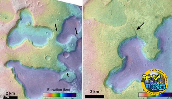 据英国《每日邮报》报道,美国宇航局火星侦察轨道器新拍摄的照片显示,火星上曾存在由液态水构成的湖泊。根据此前的想法,当时的火星还是一个冰冻的沙漠。一支由英国领导的科学家小组现在认为,30亿年前,由融冰构成的宽度12英里(约合19公里)的湖泊群曾散布在火星赤道地区。