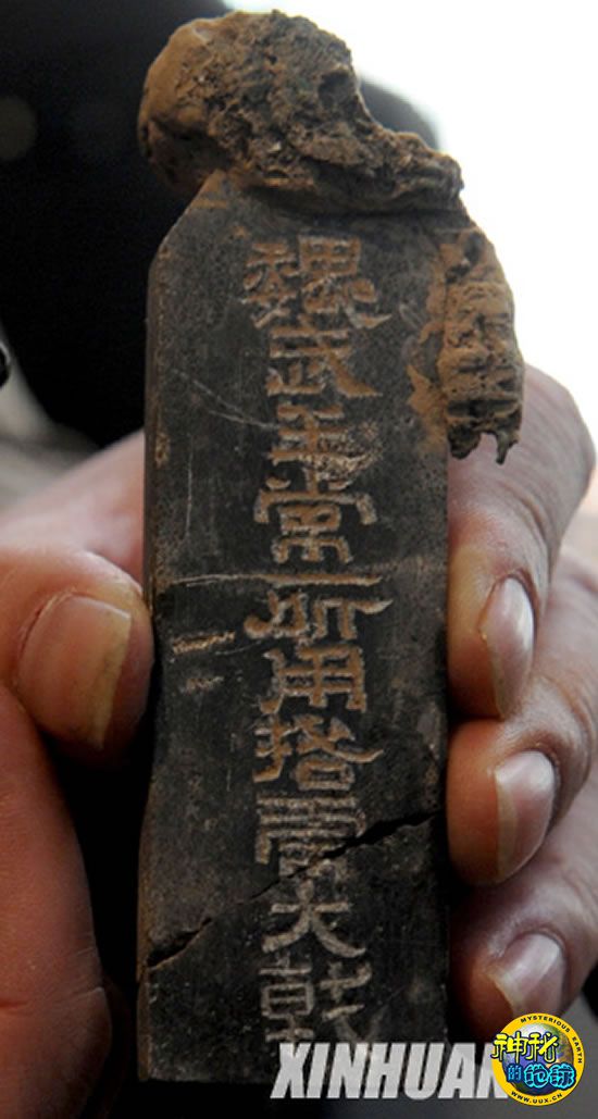 这是考古队员尚金山和信应超亲手发掘出土的“魏武王常所用格虎大戟”石牌