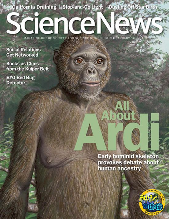 达尔文在《人类起源》中指出,人类和现代的类人猿出自共同的祖先。在对颅骨、牙齿、盆骨、手、脚和其它骨头进行分析后,科学家们确认,Ardi所代表的物种兼有人类和猿猴的特征。Ardi的体貌特征说明,现代猩猩身上某些看起来最古老的特点,比如可以弯曲的手指、能用指关节拄地行走的上肢,都是后来演化出来的;而人类手的历史,可能比我们想象的还要长。她的大脑和黑猩猩的相同,比高尔夫球棍前端大不了多少,远远小于Lucy所属的更接近人类的南方古猿阿法种。对Ardi牙齿的分析表明,她所属物种的门齿和犬齿都非常细小,主要吃水果、坚果和树叶,是典型的素食者。相比之下,现代黑猩猩的尖牙利齿则显得凶悍无比。Ardi显示了灵长类共同祖先在进化过程中的分化:猿和猩猩在四肢和移动能力方面的疯狂进化;而原始人则更多地发展了社会性。