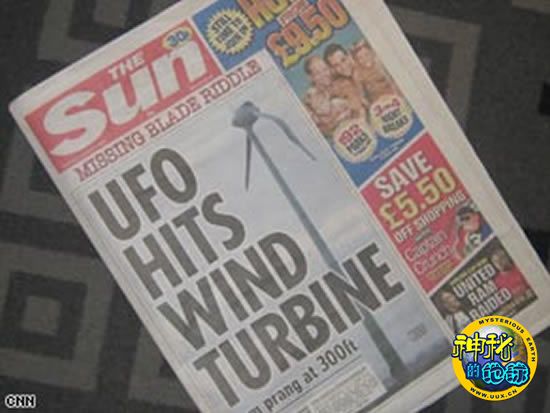 据CNN报道,本月8日一个不明飞行物袭击了英国林肯郡的一个小村庄,一个风能发电机的扇叶被飞行物击出了20米远。