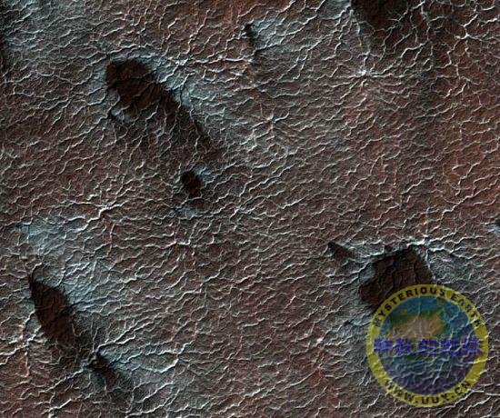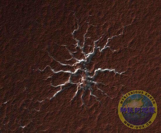 美国宇航局科学家在火星表面发现了一些由蜿蜒的沟槽形成的怪异图案,他们形象地这些图案称之为“蜘蛛”、“花边”和“蜥蜴皮”。科学家表示,根据最新的观测结果,他们可能找到了火星上一些最为怪异的地貌形成的原因。