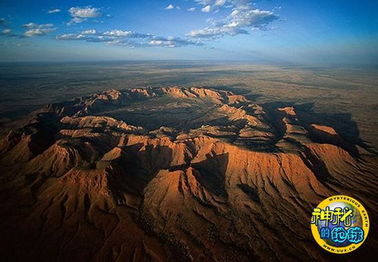 澳大利亚高斯峭壁陨坑位于澳大利亚北领地,年龄大约为1.42亿年。高斯峭壁陨坑如今看起来相当美丽。在陨坑周围形成了一圏陡峭的山峰,这些山峰大约有150米高。高斯峭壁陨坑现在已成为当地一个颇受欢迎的旅游目的地,景点位于艾丽丝泉市以西大约110英里(约合177公里)。在大约1.42亿年,一颗巨大的天体撞向地球,给当地带来了巨大的灾难,并形成了一个直径约为22公里的撞击陨坑。随着沧海桑田的变迁,如今的高斯峭壁陨坑直径只有5公里左右。