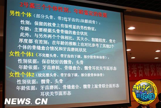 社会科学院考古研究所研究员张君介绍2号墓出土人骨的性别和年龄鉴定依据。