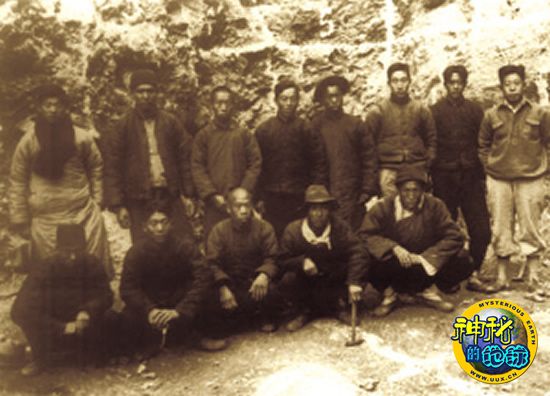 1936年,贾兰坡(右一)与技工在猿人洞发掘现场。
