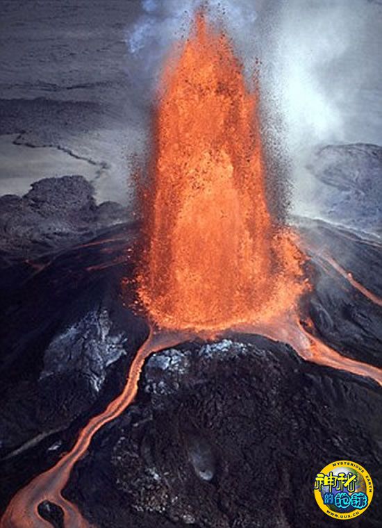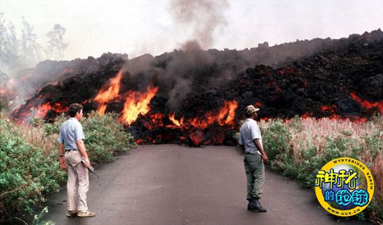 这一令人吃惊的一幕发生在普奥(Puu Oo)火山口附近,最近夏威夷火山观察站公开了这段录像。熔融体并未显示出遵从交通标志“stop”停下来的意思,它从火山口汹涌流出,迅速奔向周围的马路,并流进附近的皇家花园里。