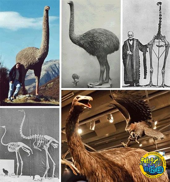 恐鸟是一种不会飞行的鸟类,生活在公元前1500年的新西兰。由于遭到毛利部落的疯狂捕杀,这种鸟类已经灭绝。虽然在身体上拥有绝对优势,但这不足以帮助恐鸟对抗人类锋利的长矛。恐鸟身高可达到12英尺(约合3.65米),体重超过500磅(约合227公斤),现代鸵鸟站在它们面前只能算是一个侏儒。