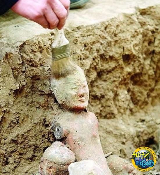 在M8的周围,考古专家先后发现了6座大小不一的陪葬坑。发掘一座座陪葬坑,惊现“千军战俑”,有陶俑、木俑。