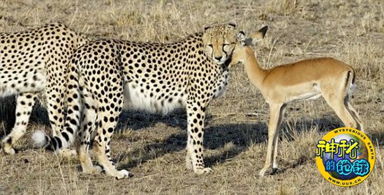 忘记自己身处险境,这只小羚羊看样子对非洲猎豹的友好做出了回应