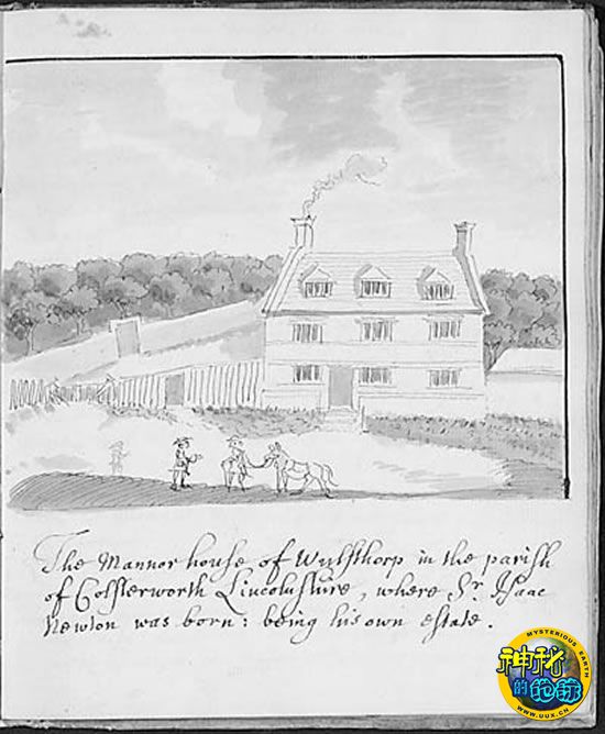 威廉·斯蒂克利在传记中为牛顿故乡伍尔索普庄园作画