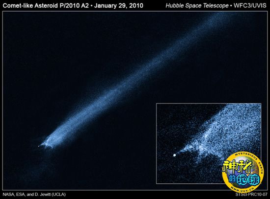 普通的彗星一般都是从遥远的柯伊伯带和奥尔特云跌入到太阳系的内层区域的。随着彗星越来越接近太阳,它们也不断被加热升温。于是,彗星表面的冰层被蒸发,固体彗核会喷射出大量的物质。但是,“P/2010 A2”的来源显出明显的不同。它是在小行星带温暖的内层区域运转,它身边的最近邻居都一些干燥的岩质天体,很少有易挥发性物质。