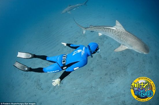 虎鲨和大白鲨通常被认为是对人威胁最大的海洋生物,然而,自由潜水爱好者威廉姆-温拉姆和皮埃尔-弗洛拉偏偏不信邪,决意实施他们大胆的水下冒险,欲揭开围绕这些鲨鱼的种种传说。二人在没有铁笼和其他防护设备的保护下,只穿游泳衣与鲨鱼来了个“亲密接触”。
