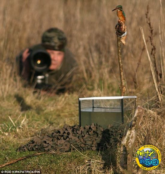 格拉夫在河边布置了一个透明水缸,在其中放入小鱼作为诱饵,诱骗翠鸟做出高难度捕食动作