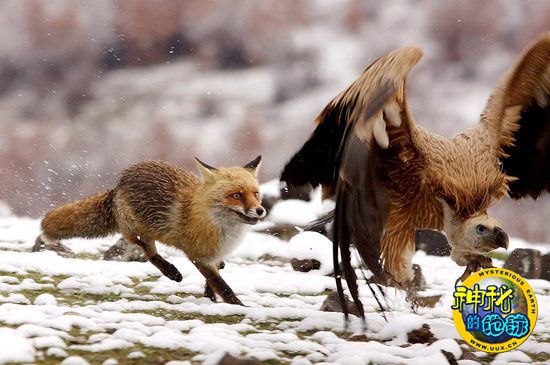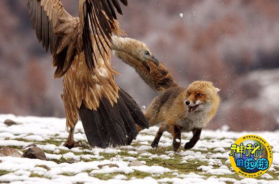 秃鹰大战狐狸 来源: 神秘的地球 时间:2010年2月10日 15:54 秃鹰大战狐狸 秃鹰大战狐狸 秃鹰大战狐狸 野生动物摄影师Mladen Vasilev在保加利亚南部拍摄到了狐狸和秃鹰在雪地中打斗的场面。当狐狸突然出现时,秃鹰正和它的同伴们在一只动物尸体上大快朵颐。其他秃鹰在见到狐狸后惊慌失措地飞回了天空,只有这只秃鹰因为体型太大无法及时起飞,只能与狐狸大战了几个回合才得以脱身。 China Foto Press 上一篇 下一篇 TAG: 狐狸 秃鹰