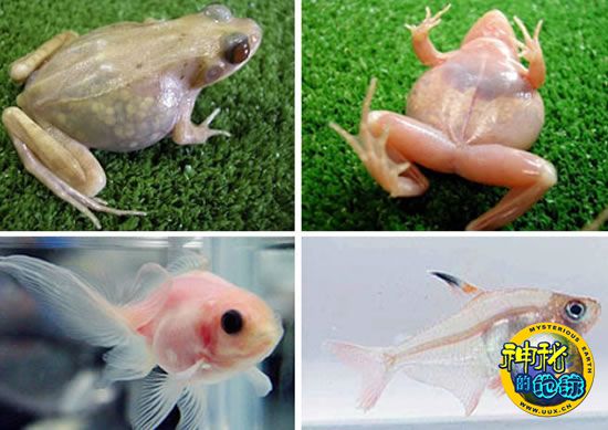 5. 透明青蛙和鱼类可清晰显示体内器官