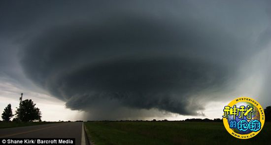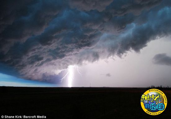 这是来自于科克的摄影书籍《中西部风暴》中的一幅UFO形状的云图。本图拍摄于密苏里州卡梅伦附近,拍摄时间为凌晨。当时,他已经在户外守候了8个小时。直到凌晨3:30,他的妻子才提醒他第二天早上8点还要上班。