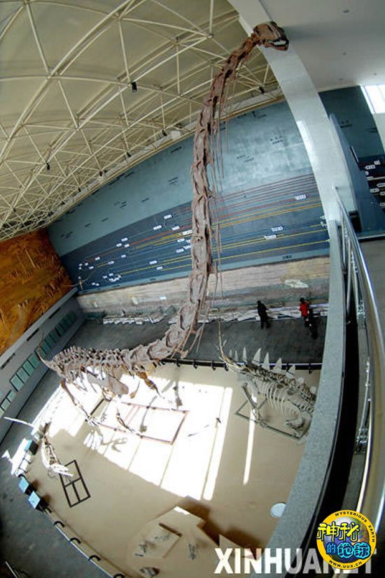 园内展出的一个巨大的长颈龙模拟骨骼化石