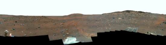 在服役6年多之后,美国宇航局宣布“勇气号”将不再在火星上跋涉,但是它将成为一个“静止的研究平台”。NASA火星探测计划主管道格·麦克奎斯逊说:“‘勇气号’并没有死,而是进入了生命的另一个阶段。”“勇气号”已经开始了一些实验,比如它开始研究火星中轴线的振动频率,以更好地了解这个星球的内核。这个实验需要花几个月的时间跟踪火星表面的一个点的运动,计算其细微变化。此外,“勇气号”的机械臂上的工具可以研究附近土壤的不同组成成分,它的加速仪可以起到测震仪的功效,可以监视风是如何带动土壤颗粒,火星大气是如何运作的等很多方面。如图所示,这是“勇气号”全景相机所拍摄的最后一张照片,显示了从“特洛伊”丘陵所看到的景色。与“勇气号”当年同期发射前往火星的“机遇号”仍继续在火星上自由行动。