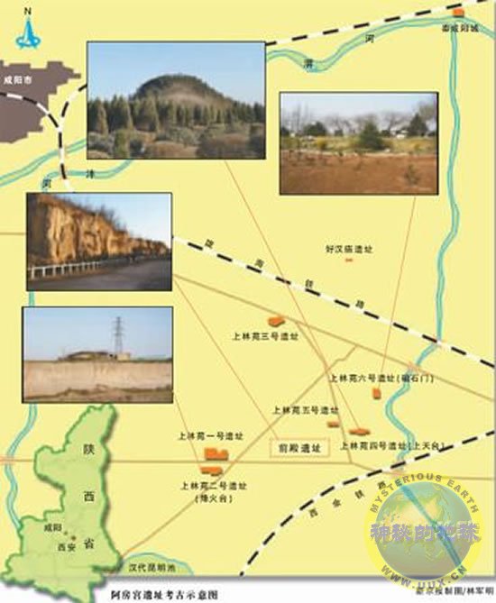 事实上,西安市文物部门曾于1994年组织人力大致划定了阿房宫遗址的范围:东至皂河、西至纪阳寨、南至和平村,北至三桥镇,面积10.89平方千米。而《史记》记载,秦阿房宫是建筑在战国时期秦国修建的上林苑中。到了汉代,这里又成为汉王朝皇家园囿上林苑的一部分。