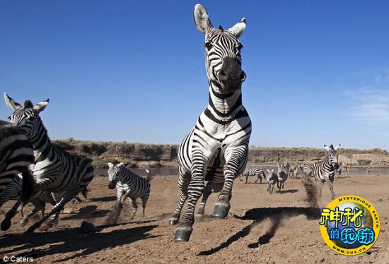 这幅展现斑马四散而逃的照片是由伪装成石头的照相机拍摄的。
