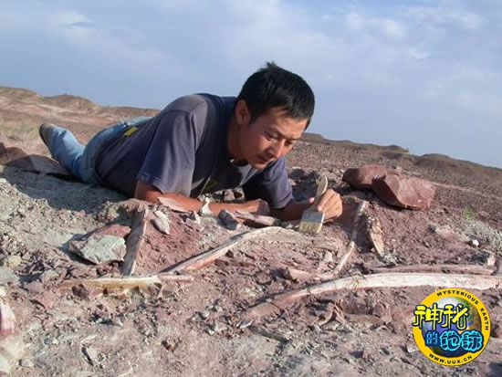 徐星研究员在新疆准噶尔盆地侏罗系地层中采集恐龙化石