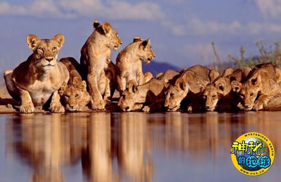 敬业的南非野生生物摄影师格雷格-杜陶伊特为了能够捕捉到野生狮子饮水时的完美照片,竟然历时三个月潜伏于狮群常到的水塘中,潜水时间总共长达270小时。摄影师的敬业精神和辛苦努力为他换来了一组精彩、传神的野生动物图片。