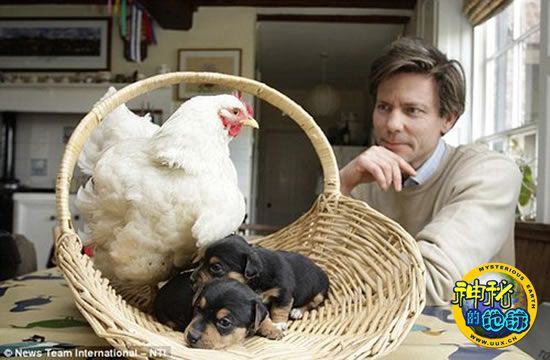 母鸡“强行收养”一窝小狗 来源: 神秘的地球 时间:2010年3月06日 16:25 母鸡“强行收养”一窝小狗 自认为是一条狗 母鸡“强行收养”一窝小狗 自认为是一条狗 梅布尔、小狗以及它们的主人塔特 据英国《每日邮报》3月3日报道,英国一只一岁大的母鸡,总以为自己是一条小狗。为此它强行收养了一窝小狗,让这些小狗的母亲困惑不已。 这只母鸡是主人爱德华·塔特从一个罐子里救出来的,现在它与这些小狗在一起。梅布尔曾被一匹马踩伤过,冬天的时候被主人抱进屋子里取暖。梅布尔先是观察奈特的行为,并在一个偶然的机会跳进篮子中,此后就再也不出来了。 国际在线 上一篇 下一篇 TAG: 母鸡
