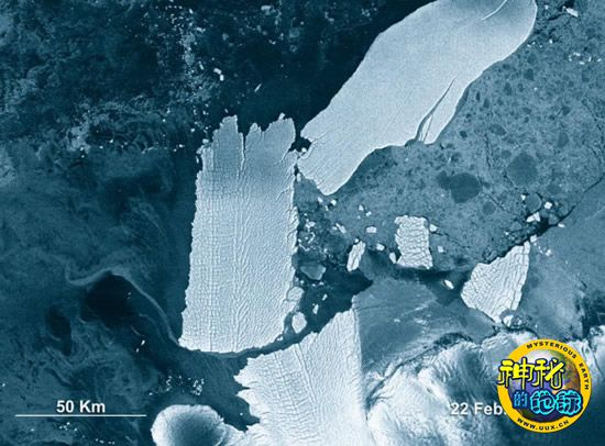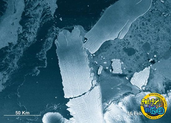 南极巨大的冰山相撞。2010年2月16日,裂痕变大。