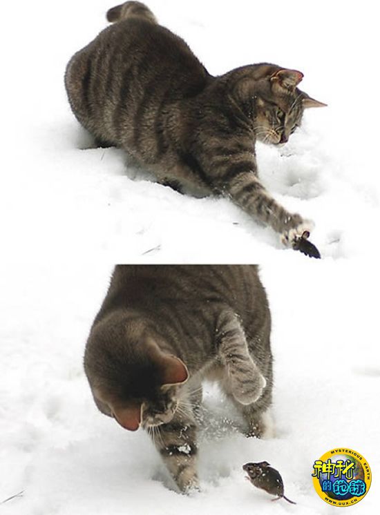 自然界中野生动物的“弱肉强食” 来源: 神秘的地球 时间:2010年3月10日 16:14 12. 猫和老鼠 猫和老鼠 《猫和老鼠》(Tom and Jerry)动画片也有现实版,一只名叫弗里克斯的猫正在雪地里逗弄一只可怜的小老鼠。没想到的是,这只小老鼠竟然也有Jerry的勇气。面对体形比自己大得多的弗里克斯,它竟然敢抬起爪子去推开戏弄它的猫爪。对于老鼠的勇敢反应,弗里克斯似乎一时没有适应过来,这有点出乎它的意料。恼羞成怒的弗里克斯当然不会再给小老鼠任何表现的机会。这只小老鼠只拥有Jerry的勇气,却没有Jerry的运气和智慧。 新浪科技(彬彬) 1...上一页3456789101112 上一篇 下一篇
