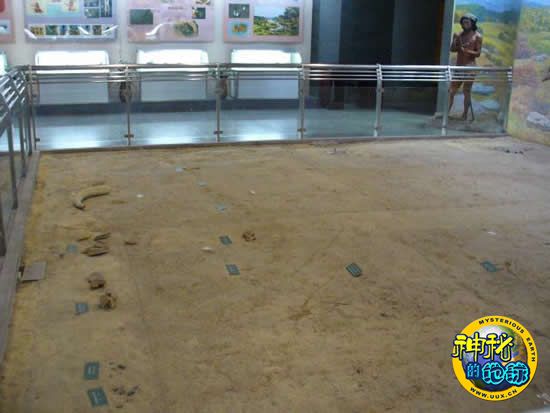 在博物馆中展出了大量动物骨骼化石,其中原始牛的下颌骨是最有特色的。从这件下颌骨中,可以看到原始牛有着粗壮的牙齿,较现在的家牛要粗大很多,其臼齿近方形。这件原始牛的下颌骨已距今2.5万年了,它不再是普通骨骼,而已经成为了骨化石。骨化石的形成是一个复杂的过程,而这一过程却是在一连串的巧合中发生的。在动物死亡后,如果尸体能及时被泥沙淹埋,与空气隔绝,加上当时的气候适当,便有可能形成化石。这种条件下,尸体腐烂慢,骨骼周围地下水中的矿物质会慢慢渗透进入骨内,取代了骨中正逐渐腐坏的有机质,使骨骼渐渐变硬,渐渐变重,但外部形态不变,只是骨内化学成分发生了变化。动物骨骼埋藏年代越久,石化程度越大。