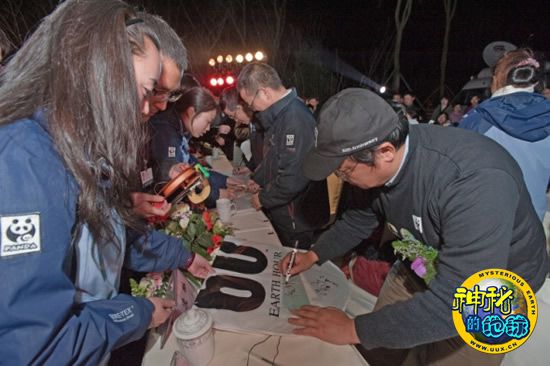 3月10日,在世界最大的大熊猫人工繁育机构——成都大熊猫繁育研究基地,象征全球24个时区的24个印有“地球一小时”全球活动推广大使大熊猫“美兰”和李冰冰,中国活动推广大使崔健和李宇春掌印的孔明灯由24名环保卫士点燃放飞,拉开了 “地球一小时”中国活动的帷幕。