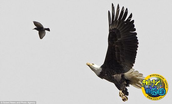 这些令人吃惊的照片是摄影师帕尔默在美国科罗拉多州拍摄的。这位来自利特尔顿,现年56岁的摄影师表示:“我发现一群鹰呆在树上,随后便开始猎杀星椋鸟和黑鸟。整个捕猎行动持续数天之久。在空中飞行时,星椋鸟显然成为鹰的猎杀目标。发现猎物之后,两三只白头鹫便开始展开追击。给人的感觉是,星椋鸟好像被催眠了,因为它们显然没有意识到自己已处在危险之中。”