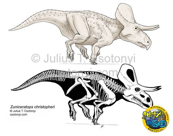 祖尼角龙 来源: 神秘的地球 时间:2010年3月14日 16:20 祖尼角龙Zuniceratops复原图 祖尼角龙Zuniceratops复原图 祖尼角龙Zuniceratops化石 祖尼角龙Zuniceratops 祖尼角龙Zuniceratops是基础的角龙超科Ceratopsoidea,是角龙科Ceratopsidae的姐妹群,生活在美国新墨西哥州的祖尼盆地,时代是晚白垩世的Turonian期。祖尼角龙体长3. 5米,体重600公斤。 上一篇 下一篇 TAG: 祖尼角龙