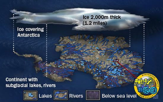 南极冰原下埋藏有发达的水系,包括湖泊和河流