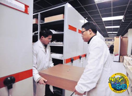 工作人员小心翼翼地将化石抬出