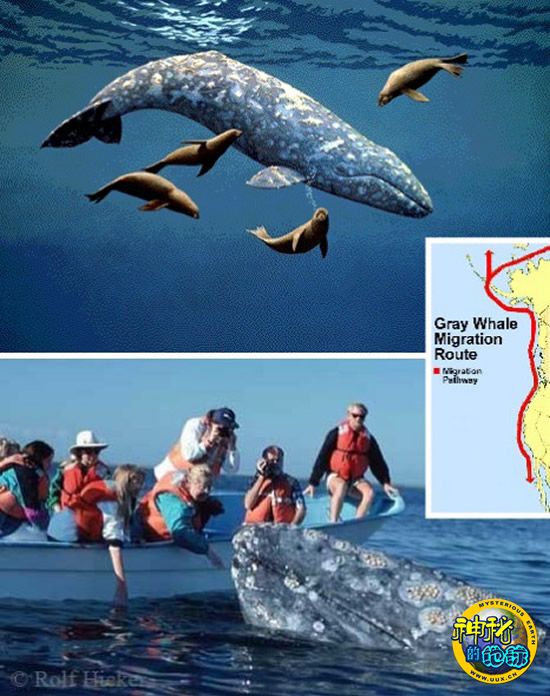灰鲸是下加利福尼亚及其周围地区最具吸引力的观光景观之一,但是很少有人清楚它们的长距离迁徙活动。事实上,灰鲸是所有已知海洋或陆地哺乳动物中迁徙距离最远的动物。每年这些中等大小、非常温顺的鲸目动物要游1万到1.2万英里(大约1.8公里)路程,在它们的冬季繁殖地——加利福尼亚州和墨西哥近海的泻湖,以及阿拉斯加州周围的阿留申群岛和白令海峡的夏季觅食场来回游一圈。