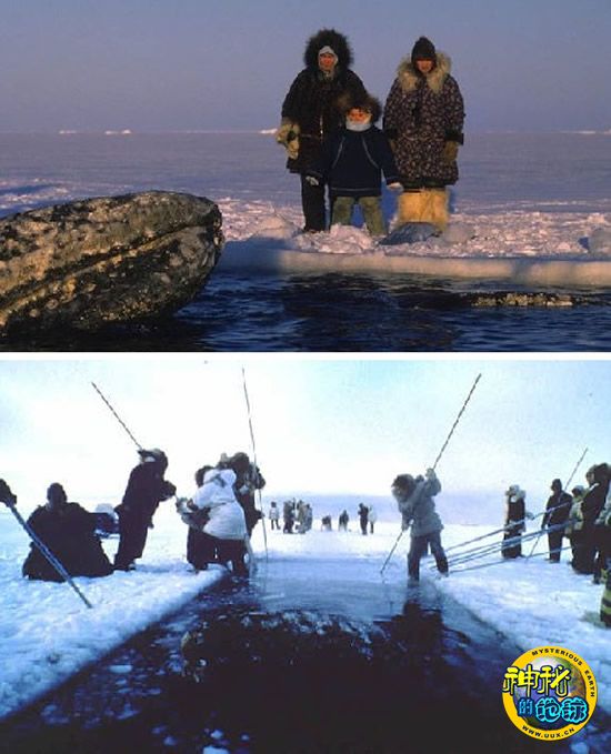 1988年人们努力营救3只在北极逗留时间太长,被困在巴罗角(Point Barrow)海冰里的灰鲸