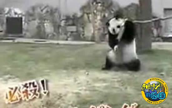 一次还不甘心,熊猫又把树枝捡起来,腾空抛出去;但因为重心不稳,好几次都摔到连自己也四脚朝天。最后它拿出绝招,狠狠地对树枝使了个“过肩摔”,才放它一马。