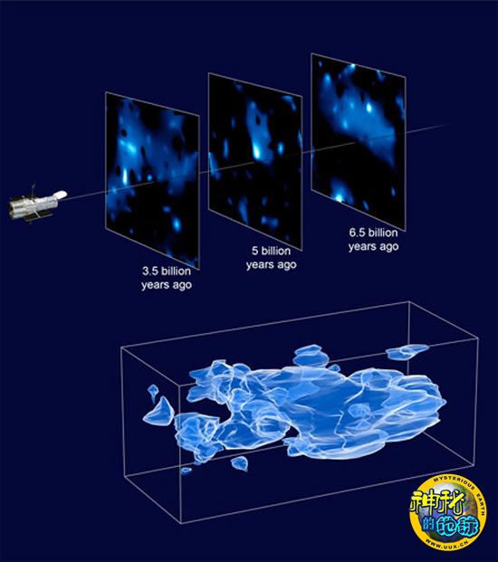 论文的另一位联合作者、来自美国哈佛大学的科学家威廉姆-哈伊解释说,“此前,大多数研究都在二维条件下完成的,就好比进行一次胸部X光检查。但是,我们的研究类似于利用CT扫描技术对骨骼进行三维再造。在此基础上,我们可以看到从宇宙幼年时期到现在成长过程中的暗物质的‘骨骼’。”