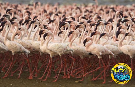 一些生物在极端环境下生存的诀窍 来源: 神秘的地球 时间:2010年3月31日 12:05 4.火烈鸟 火烈鸟 对于生活在东非大裂谷的火烈鸟来说,该地区腐蚀性碱性池塘却是欢乐的天堂。在普通动物眼中,这是一片由碱性矿物盐构成的大熔炉,然而,火烈鸟看到的却是丰富的营养物—美味的淡青色的“螺旋藻汤”。为了得到螺旋藻,火烈鸟必须先要过滤河水。这时,火烈鸟高度进化的喙就能发挥作用了。它们首先用双脚将水搅浑,不停在水中左右摇摆头部,每天用舌头过滤35品脱(约合16.56升)的水。一天即将结束的时候,火烈鸟或能够收集2盎司(约合56.7克)富含营养物的螺旋藻。 上一页12345678910下一页 上一篇 下一篇