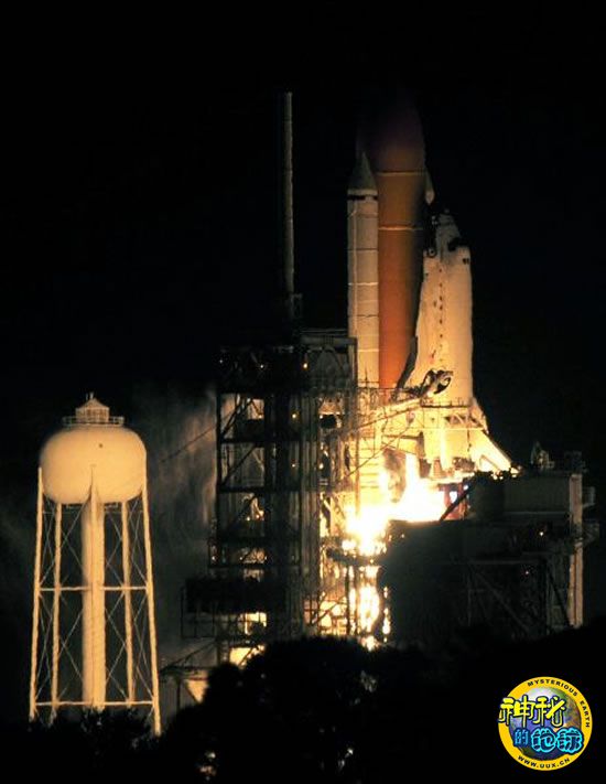 美国航天局电视台的直播显示,伴随着巨大的轰鸣声,“发现”号从航天中心39A发射台拔地而起,其升空时喷出的耀眼火焰刹那间划破了破晓前的夜空。升空约8分半钟后,“发现”号顺利进入预定轨道,此时国际空间站正运行在大西洋上空。