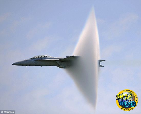 英国《每日邮报》近日公布了一组美军战斗机突破音障的精彩瞬间照片。战斗机环绕着圆锥形云雾,非常壮观,仿佛经过特效处理似的。不过,当大气条件合适、飞机超音速飞行时,就可能产生这种梦幻般的效果。