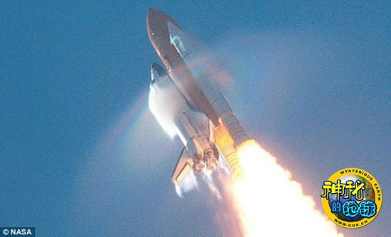 亚特兰蒂斯号航天飞机发射升空时,产生了“蒸汽锥”。